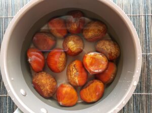 栗は水洗いした後、1時間ほど水に浸けておきます。
