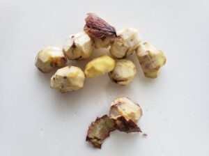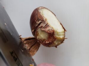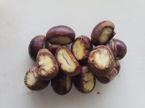 栗を取り出し、底の部分を少し包丁で切り落とします。