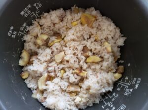 後は蓋をして炊飯のスイッチを入れ、炊き込みます。