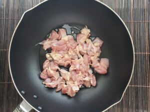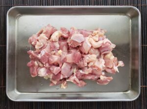 鶏もも肉は1cm四方ほどの大きさに切っておきます。