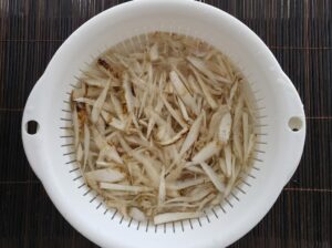 (※戻した水は煮付けに使いますので、捨てずにとっておいて下さい。)