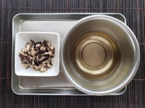 干し椎茸は水に浸けて戻しておきます。