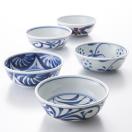 丸みを帯びたフォルムが多く、白磁に、呉須と呼ばれる薄い藍色の手書きの図案が特徴。