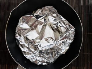 落し蓋がない場合は、写真のようにアルミホイルを被せると良いでしょう。
