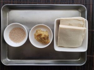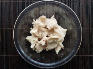 酒粕は手で細かくちぎって、耐熱ガラスのボウルなどに入れておきます。