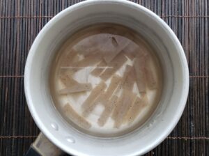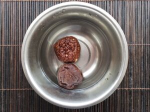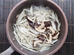 ※戻し汁は後で使いますので、水は1カップ(200cc)程度が良いでしょう。