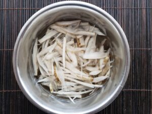ごぼうはささがきにして流水で1~2分間さらし、アクを抜いておきます。