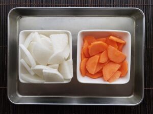 だいこん、人参は厚さ3~4mmのいちょう切りにします。